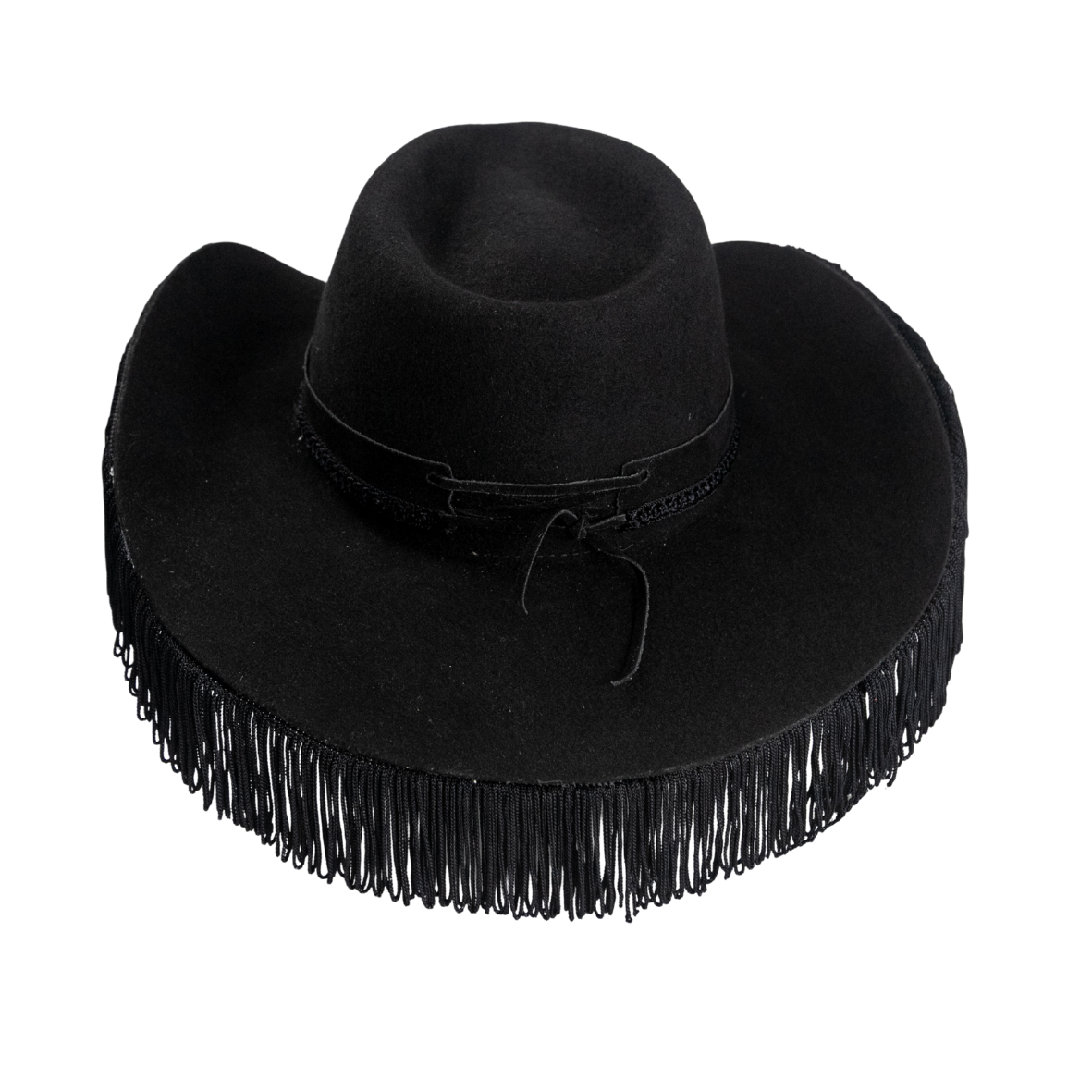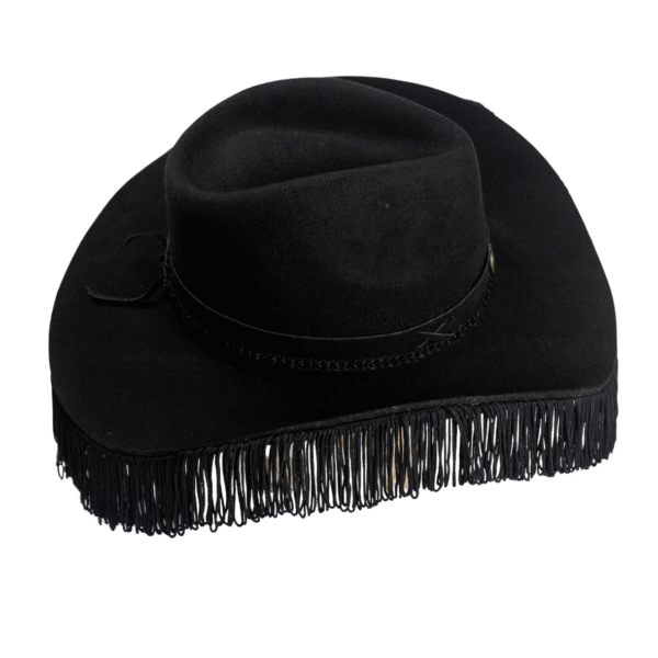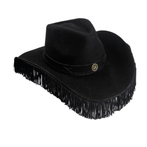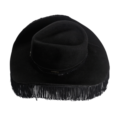 Com franjas nas laterais, este chapéu adiciona um toque de movimento e estilo, refletindo um brilho inconfundível que destaca sua singularidade.